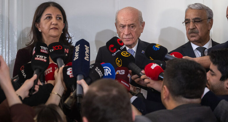 MHP lideri Bahçeli ile DEM Parti İmralı Heyeti Meclis’te bir araya gelirken, görüşme sonrası Pervin Buldan sürecin ikinci aşamaya geçtiğini ve “barış yasası”na ihtiyaç duyulduğunu söyledi. Bahçeli ise Buldan’ın açıklamalarına “İmzamı atıyorum” diyerek destek verdi.
