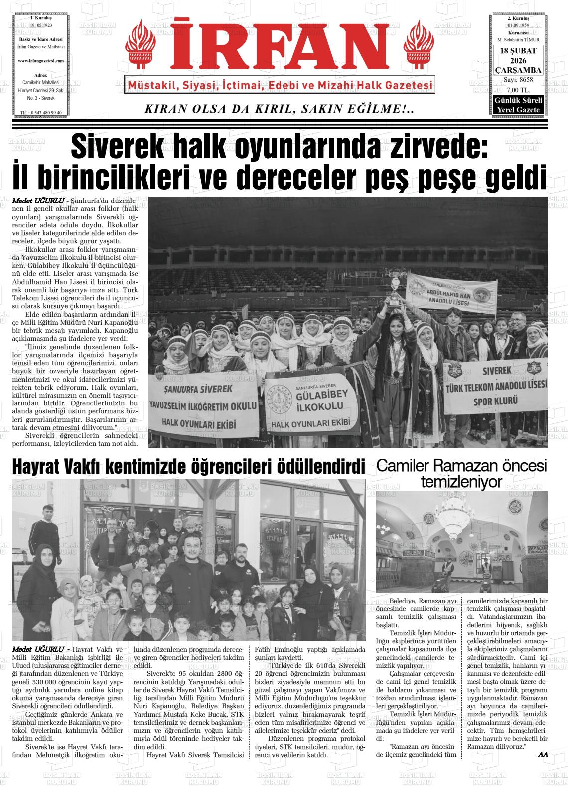 19 Şubat 2026, Perşembe Günü Manşeti