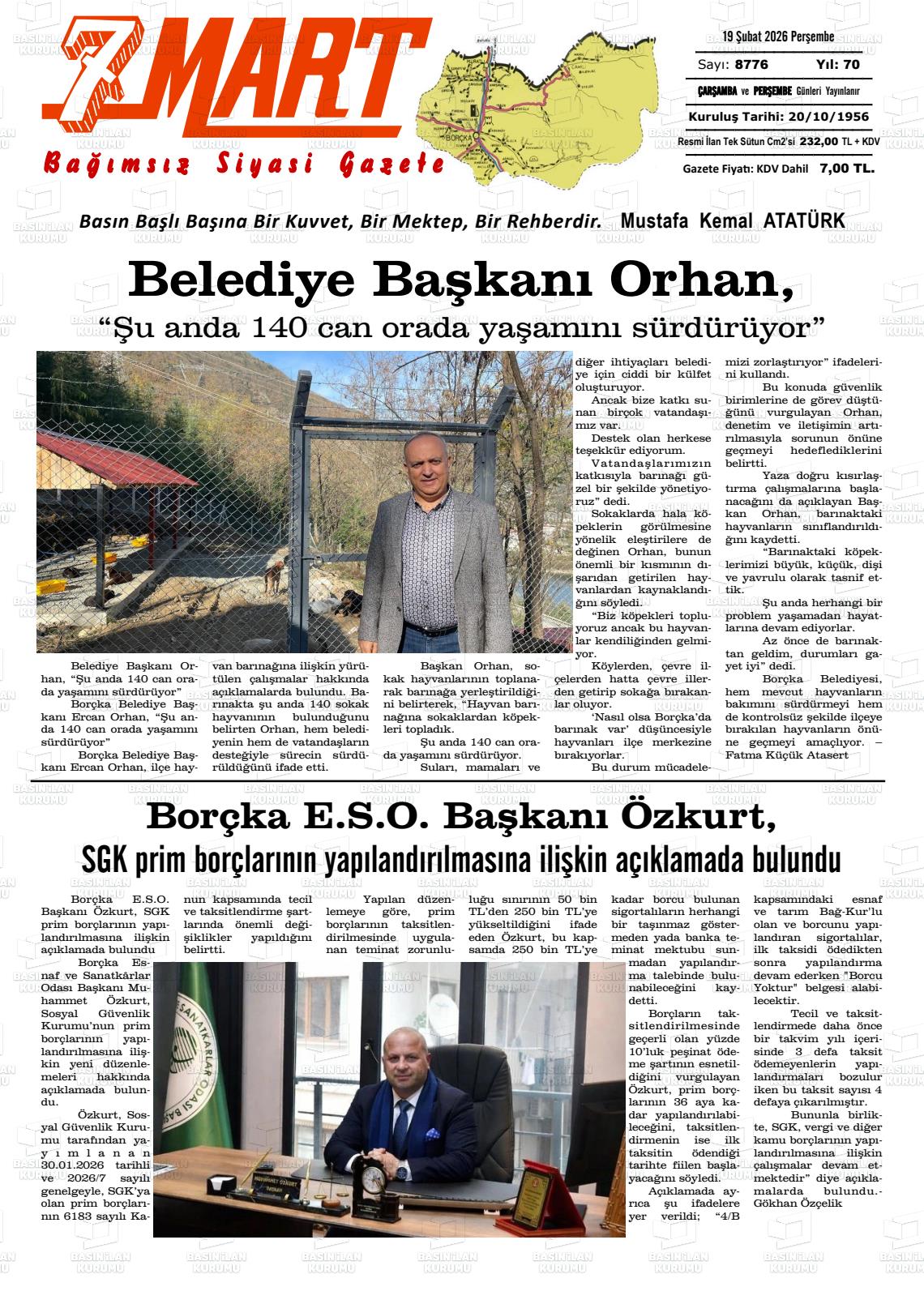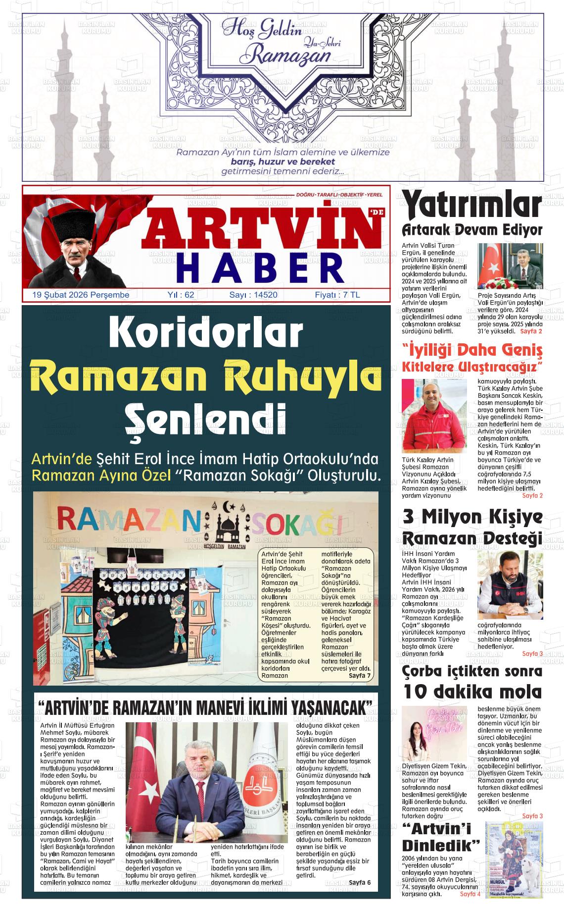 19 Şubat 2026, Perşembe Günü Manşeti