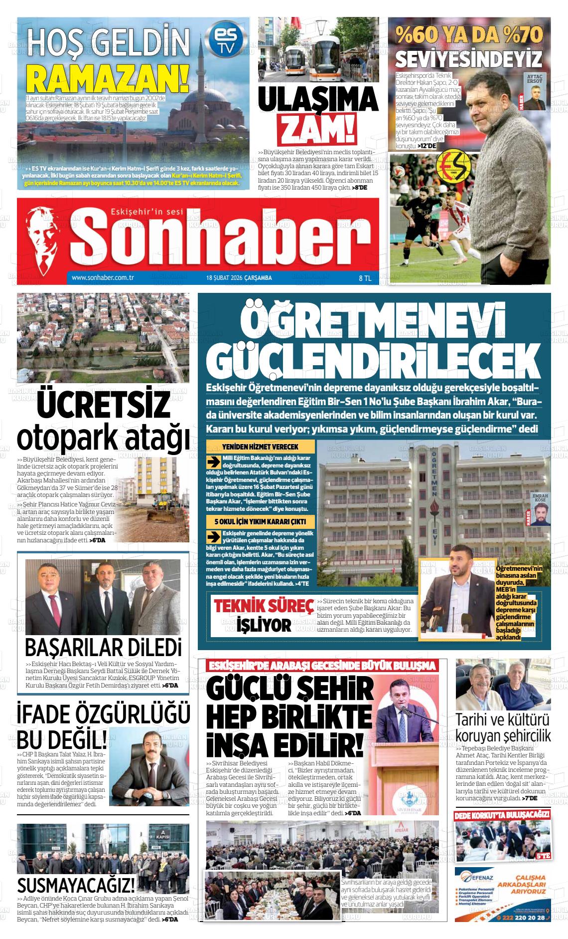 Eskİşehİr Yerel Gazeteleri 19 Şubat 2026, Perşembe Günü Manşeti